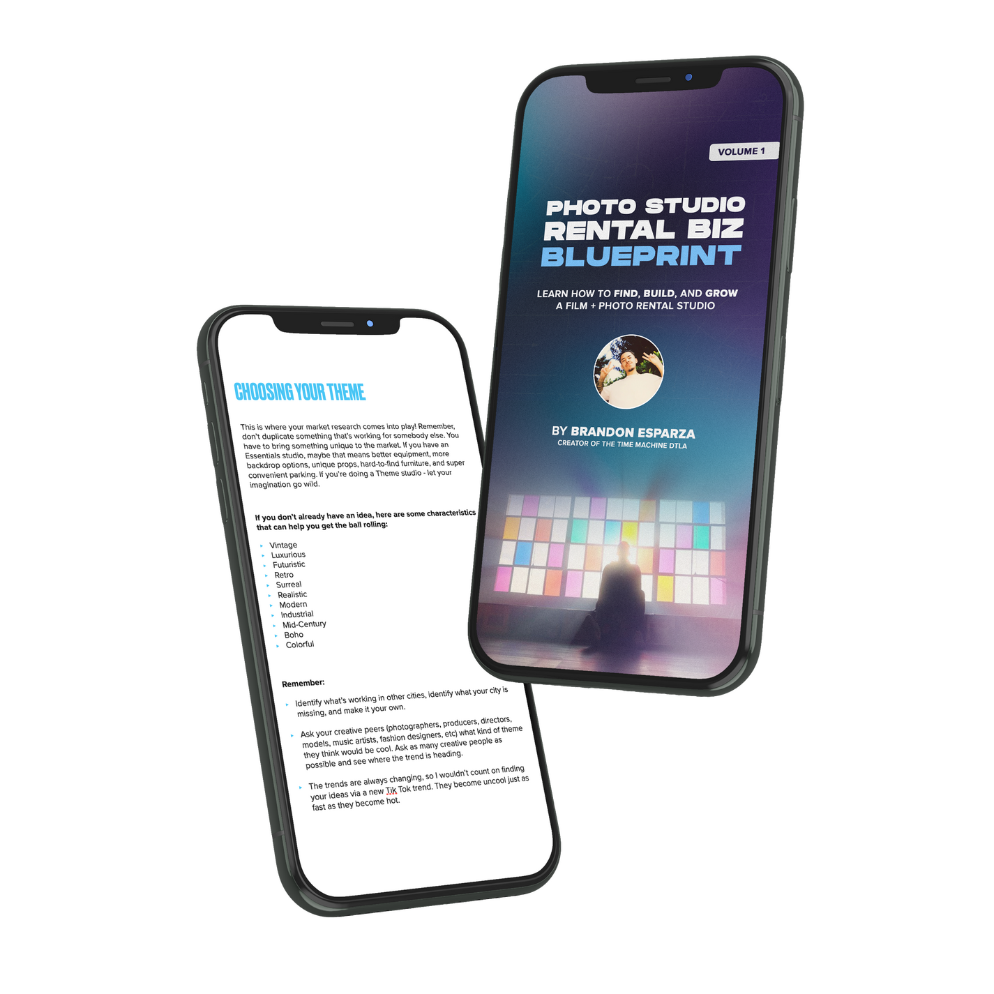 At the age of 20, I signed my first commercial lease for a 700 sq ft unit in downtown Los Angeles. Shortly after, at the age of 21, I expanded into my second studio - The Time Machine - a 3000 sq ft multi-set creative space. I started from scratch, self-funded, and had no idea what I was doing. I've learned so much by opening these two studios and am so excited to finally pass on that knowledge and help you in your journey.